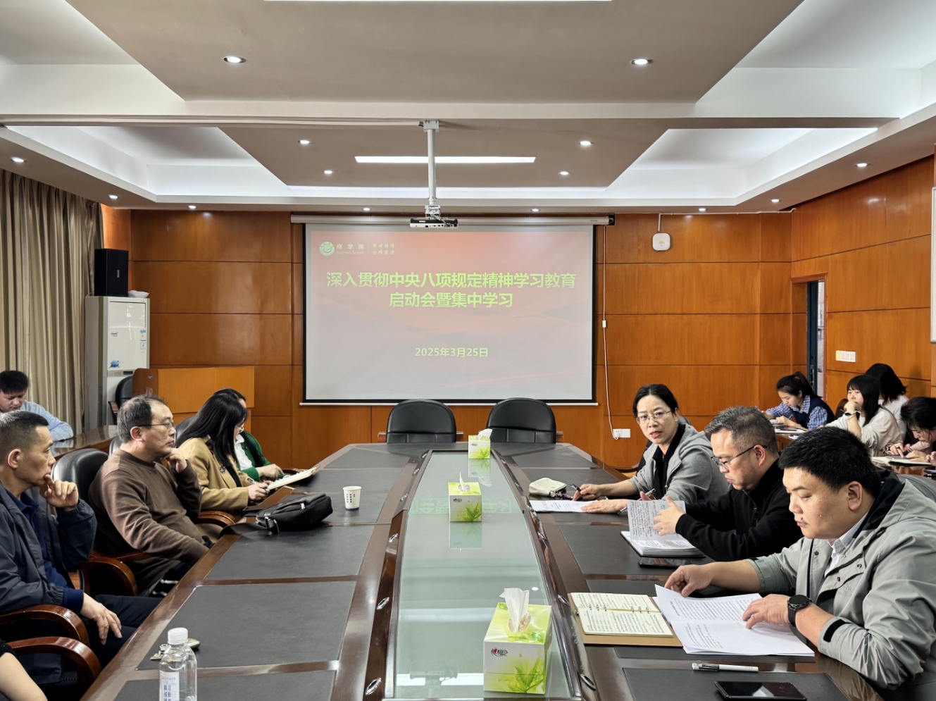 3月25日,学院组织全院党员在院会议室召开深入贯彻中央八项规定精神学习教育启动会,安排部署相关工作。会议由院党委书记宋洁主持。