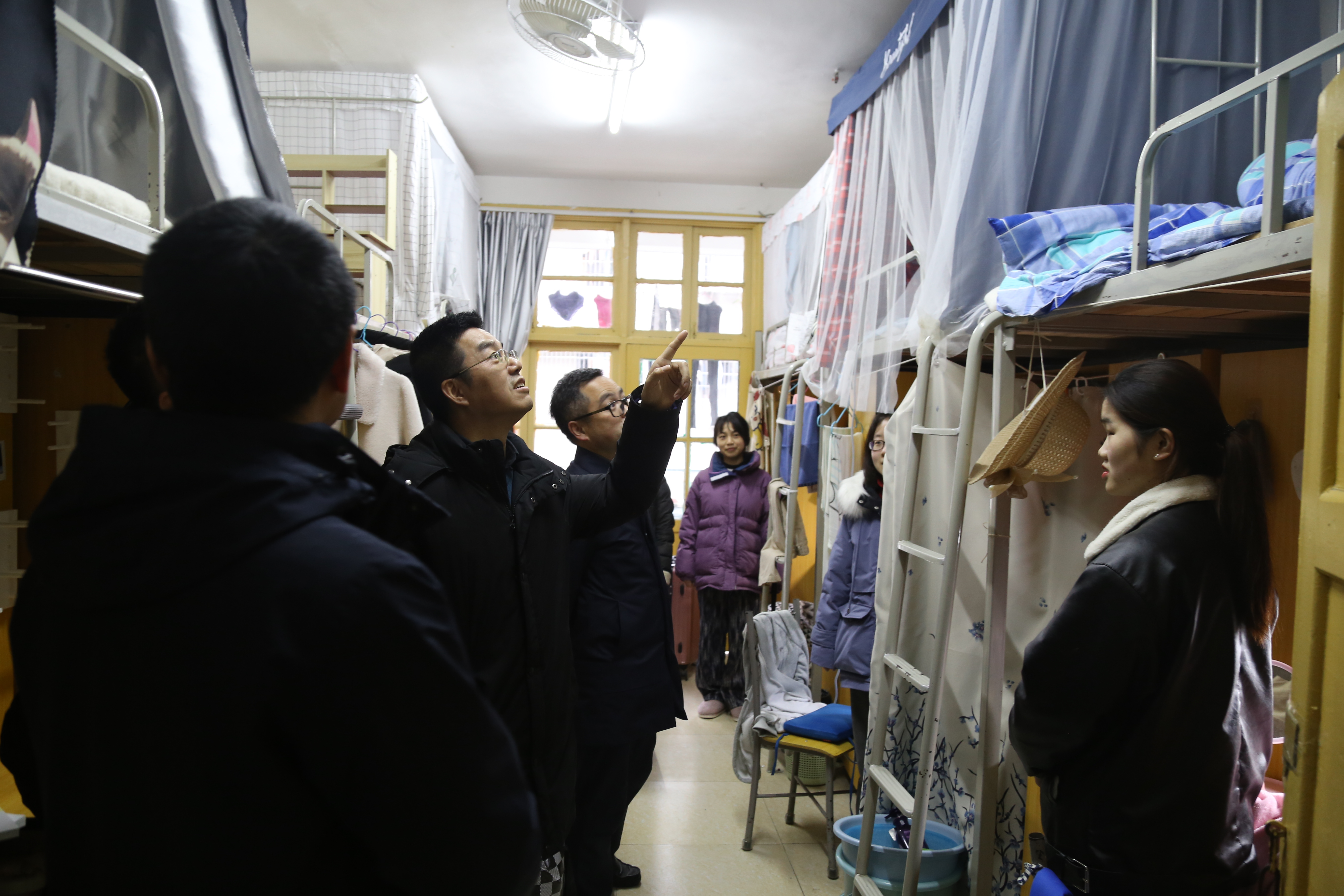 3月1日下午,院党委副书记、院长丁建军,院党委副书记胡锦湘,副院长龙海军、张琰飞率院办公室主任王泳兴、院学工办主任陈洁、院团总支书记唐琪和各年级学生辅导员到学生寝室亲切看望新学期返校报到的各年级学生。