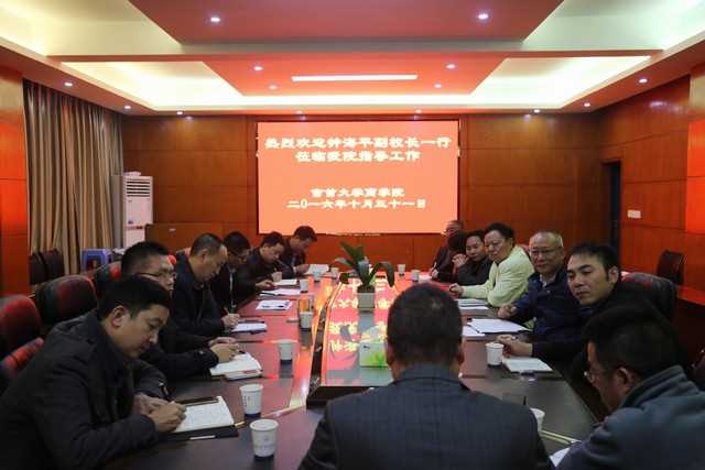 10月31日下午,副校长钟海平率深化学校综合改革专项工作组成员人事处处长吴志祥、社科处副处长吴晓、发展规划与学科建设处副处长蒋辉以及实验室与设备中心陈斌、研究生处曹福明、人事处张友福一行莅临学院就定岗定编和收入分配制度等改革进行调研。