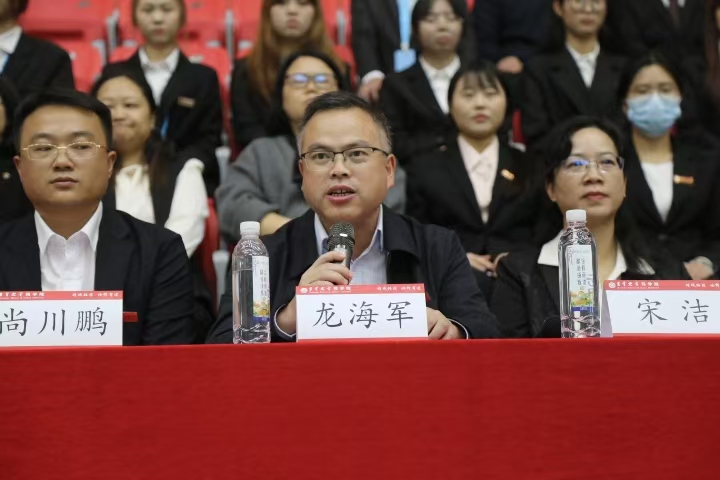 院长龙海军以“家国情怀铸学志,品质磨砺立根基”为题致辞。龙海军回顾了学院光辉的发展历程,总结了学院的建设成果。龙海军说,希望全体同学牢记习近平总书记对青年人的寄语:“青年人要不负时代,不负青春,不负韶华”,做到胸有家国,砥砺为学之志;磨练品质,立足前进之基;吃苦耐劳,永葆奋进之力;热爱生活,感受大学之美,在推进中国式现代化伟大进程中展现青春担当。