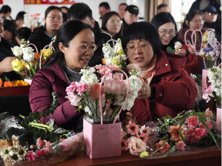 随后,教师们走进田园,开展创意插花与荸荠采摘活动。花香馥郁中,女教职工们以巧手诠释育人匠心,一件件插花作品展现了新时代吉大教师的艺术修养与创新思维;田间地头,众人挥锄采挖荸荠,在泥土芬芳中感悟乡村振兴的蓬勃生机,将劳动教育融入实践体验。