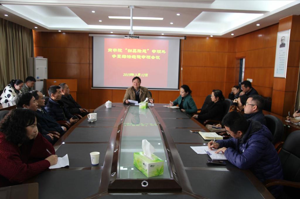 3月12日下午,学院在院会议室召开教职工大会,部署“扫黑除恶”专项斗争工作和学院综治维稳工作。院党委书记黎克双在会上传达了学校会议精神,带领全体教师学习了《“扫黑除恶”应知应会资料》,对学院“扫黑除恶”专项斗争工作做了要求和部署。他要求,全院教职工要提高对“扫黑除恶”专项斗争工作的认识,突出政治站位,做到人人知晓,人人参与;班主任和年级辅导员要开好班会,做好线索摸排,强化学生安全教育。他指出,学院将进一步抓好落实,突出重点,营造宣传氛围,做好“三个严防”,推动扫黑除恶专项斗争和学院综治维稳工作取得更大成效,确保学院安全和谐稳定。