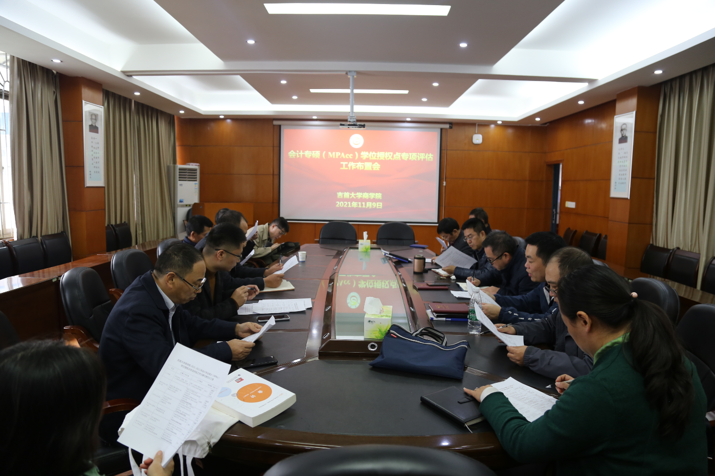 11月9日中午,学院在院会议室召开学院举行会计专硕(MPAcc)学位授权点专项评估工作布置会,院党委书记李启贵,院党委副书记、院长丁建军,副院长龙海军、张琰飞和MPAcc教育中心全体人员、会计专硕(MPAcc)全体导师参加了会议,会议由张琰飞主持。