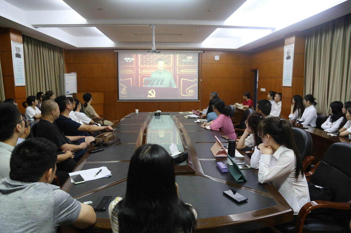 7月1日是中国共产党的百年华诞,这天上午,庆祝中国共产党成立100周年大会在北京天安门广场隆重举行,学院党委组织全体党员教师和各学生支部委员在院会议室、各班组织班级同学在教室集中观看了这一盛会,认真聆听中共中央总书记、国家主席、中央军委主席习近平的重要讲话。