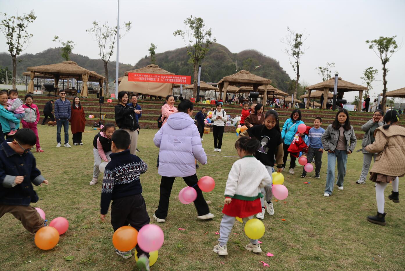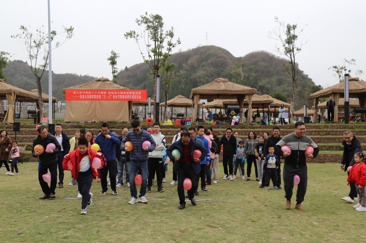 在教职工团队建设比拼中,全体教职工分成5支队伍进行了“企鹅漫步”“一传到底”“蜻蜓点水”“踩气球”等系列团队比拼。各参赛队伍团结一心、齐心协力,将“一个好汉三个帮”的协作精神贯穿始终,教职工欢声笑语不断,活动高潮层出不穷。