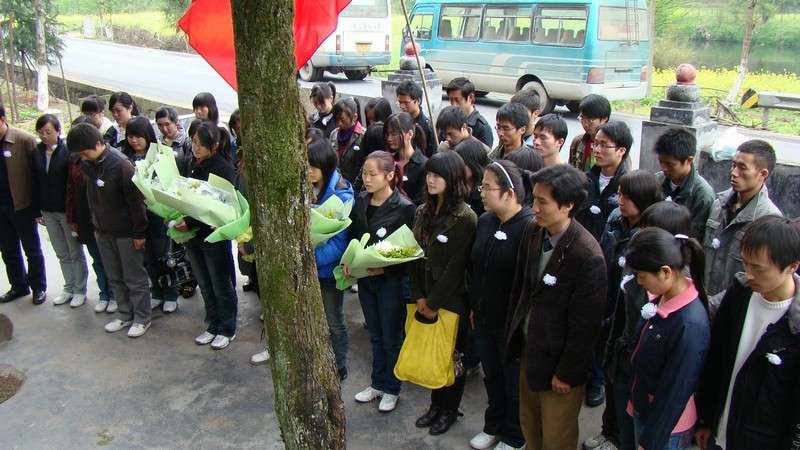 凝重而庄严的扫墓活动蒙蒙细雨中拉开序幕。党员代表覃业宏、柴周兰等向烈士敬献了花圈、花束,全场肃静。三鞠躬后,大家都不约而同地低下了头,表情凝重,向革命先烈默哀一分钟,环绕纪念碑一周,表达了对先烈们的无限崇敬和诚挚缅怀。