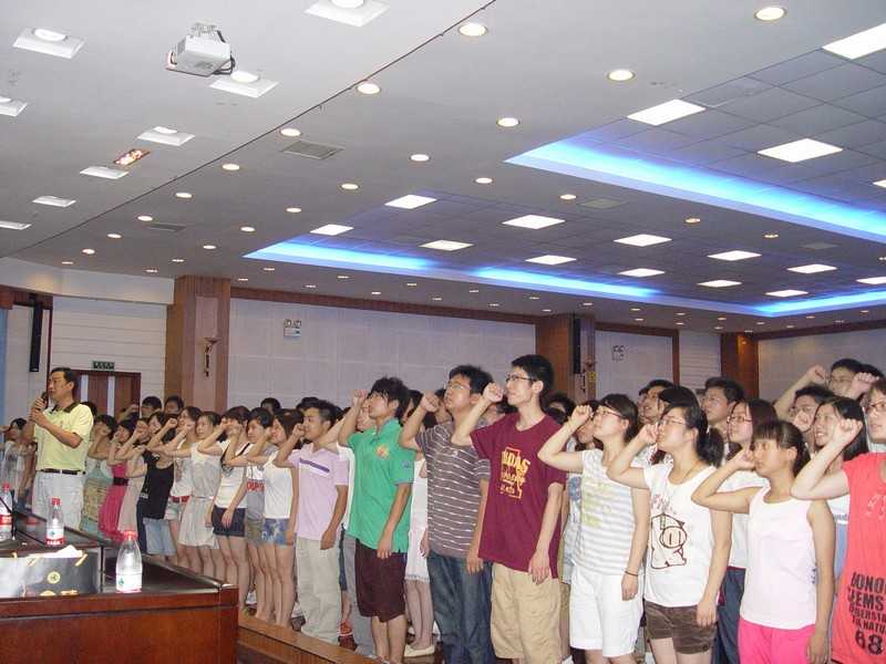 2010年7月7日晚上7点30分,太阳成集团在学校模拟法庭召开学生党员入党宣誓暨创先争优活动动员大会。