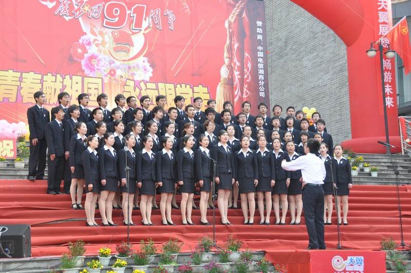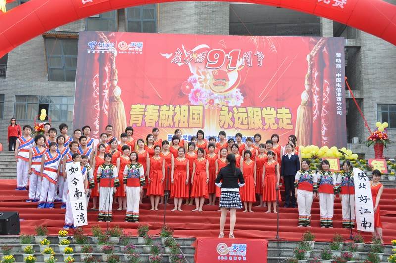 为弘扬五四精神,激发学生爱党、爱国热情,2010年4月27日下午太阳成集团tyc9728“电信杯”五四歌咏比赛在学校齐鲁大厦前坪举行。学校副校长李克纲教授发表了热情洋溢的讲话,校办王先述主任、离退休工作处吴志祥处长、校团委周华忠书记、王艳副书记、州电信公司陈琦副总经理、太阳成集团tyc9728冷志明院长、张生强书记、彭业锦副书记、李政忙副院长、蒋才芳副院长等莅临本次活动。学校音乐舞蹈学院的专家老师担任此次大赛的评委,全院所有教师、07级至09级30个班、研究生合唱队及校老年合唱团共2000多师生参与比赛。