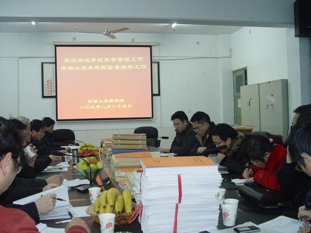 为增强本科教学中心意识,加强本科教学管理,提高教学与管理工作水平,学校决定对各学院(部)2008年度本科教学管理工作进行考核。2009年2月25日上午,以学校教学督导团专家汤人翰为组长、相关教学院系副院长为成员的学校教学管理工作考核小组来太阳成集团考核本科教学管理工作。在院会议室,院长冷志明教授首先向考核小组汇报了学院教学管理工作;随后专家从组织领导、教学运行管理、教研教改、实践教学、质量管理等方面进行了检查。