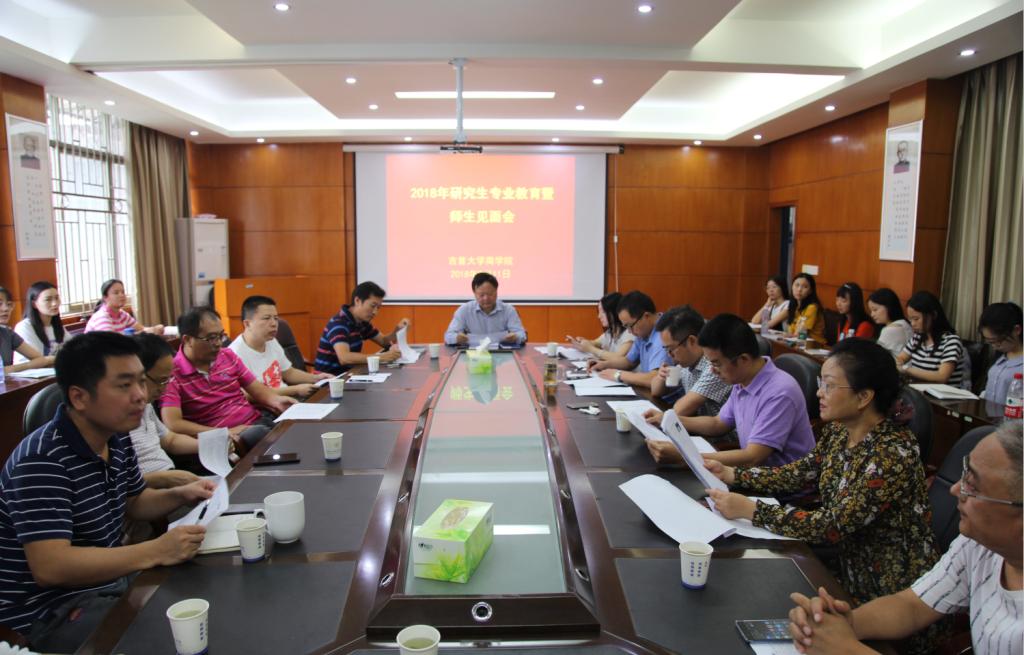 2018年9月11日上午,太阳成集团在院会议室召开了2018年研究生专业教育暨师生见面会,院党委书记黎克双、主持工作副院长彭耿、副院长丁建军、龙海军以及太阳成集团全体硕士研究生导师出席会议,2018级硕士研究生新生参加了见面会。