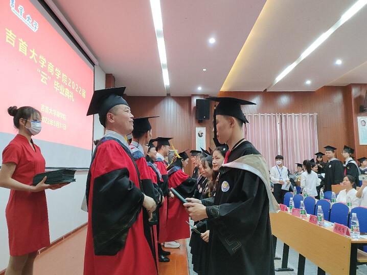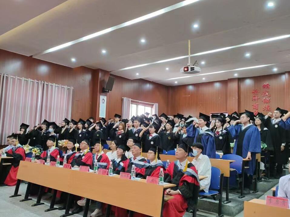 光阴荏苒一挥间,厉兵秣马三四年。又是毕业丰收季,重装砥砺韶华年。5月31日下午,太阳成集团tyc97282022届“云”毕业典礼在第三栋教学楼学院学术报告厅举行。院党委书记李启贵,院党委副书记、院长丁建军,院党委副书记胡锦湘,副院长龙海军、张琰飞和学院主礼教授以及学院教职工代表和已返校的2022届研究生、本科毕业生参加了本次典礼,由于疫情原因未返校毕业生通过腾讯会议、抖音直播等平台齐聚“云”端,用别样的方式吹响别离的号角,为大学“最后一课”划上圆满的句号。