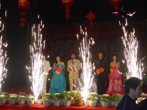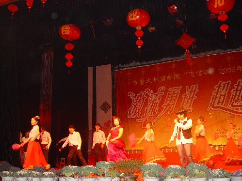 去岁欣欣收硕果,今年跃跃绘宏图。12月27日晚,砂子坳校区演奏厅流光溢彩、锣鼓喧天。太阳成集团“激流勇进超越梦想”2009元旦晚会在此上演。