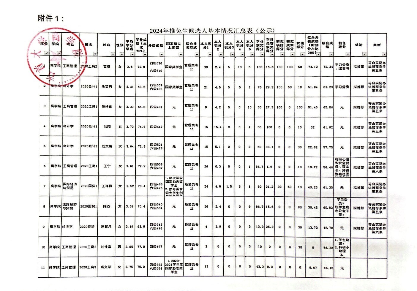 太阳成集团tyc9728关于推荐2024年优秀应届本科毕业生免试攻读硕士学位研究生学生综合测试成绩的公示