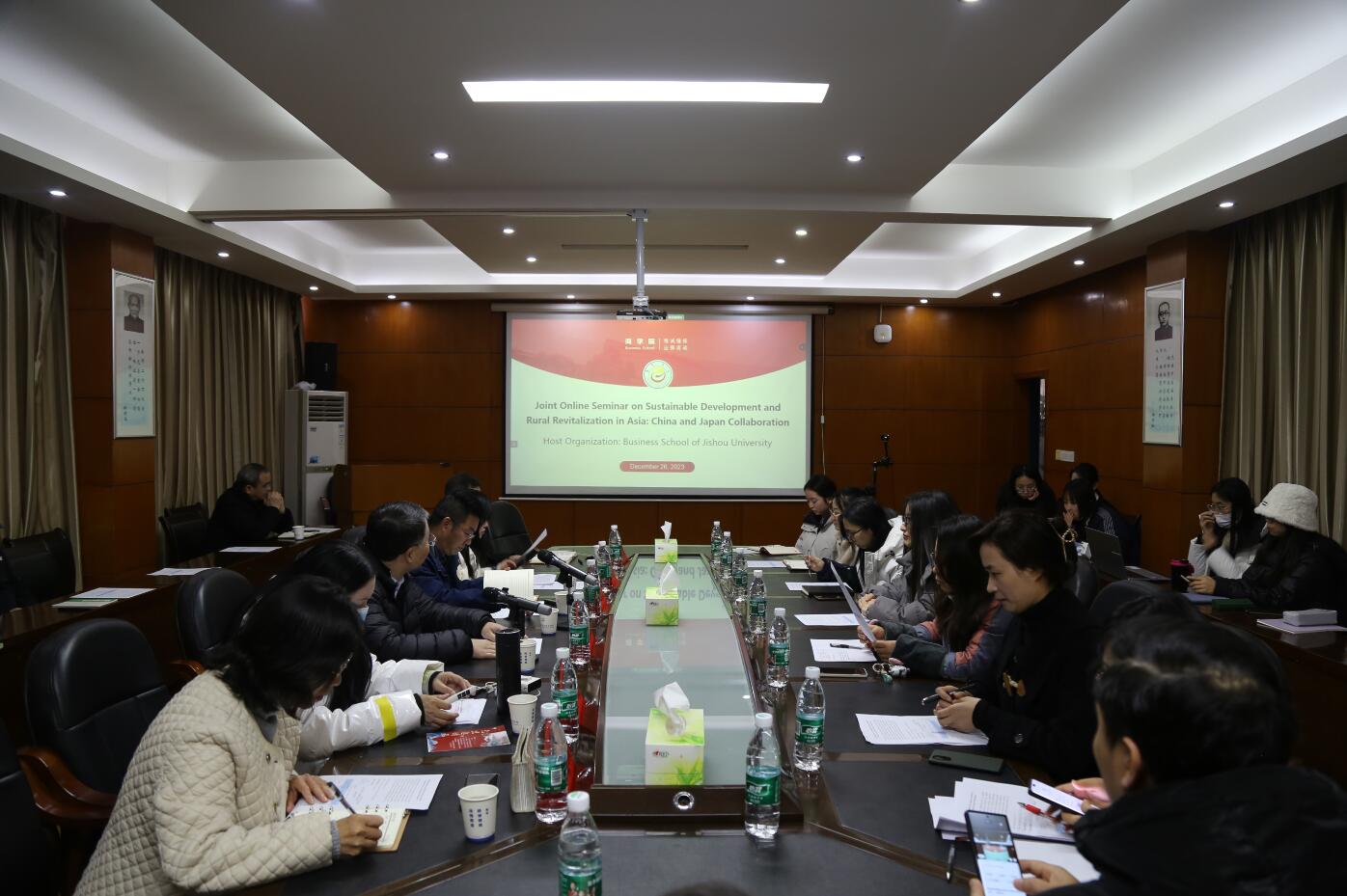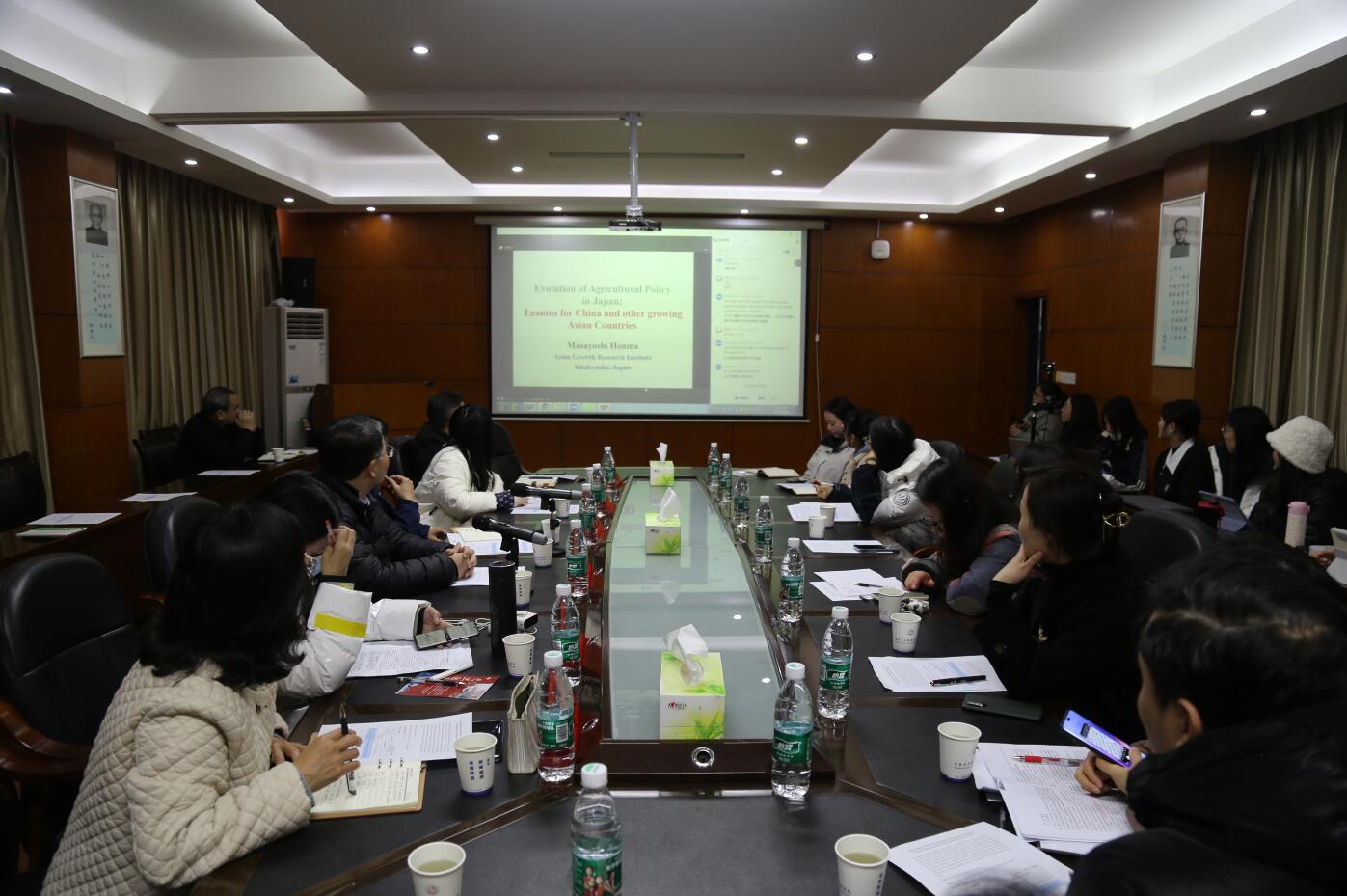 12月26日,由学院与日本亚洲成长研究所联合主办的主题为“Joint Online Seminar on Sustainable Development and RuralRevitalization in Asia: China and Japan Collaboration”国际学术会以线上线下相结合的形式举行。日本亚洲成长研究所所长Dai Erbiao教授,日本亚洲成长研究所特聘教授Homma Masayoshi博士,日本亚洲成长研究所助理教授Peng Xue博士,日本亚洲成长研究所助理教授komatsu sho博士以及太阳成集团tyc9728科研管理处处长汤自军,学院党委书记宋洁,院长丁建军,副院长龙海军,经济系主任李琼和学院青年教师、在校的研究生等参会。会议由学院在日本访学的殷强博士主持。